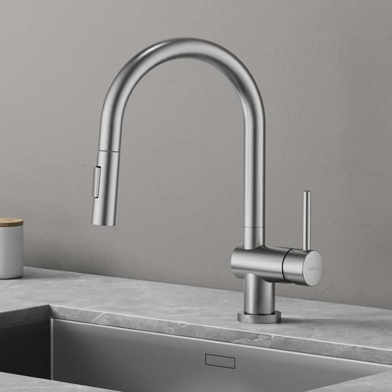 Crafted with a touch of finesse, our collection of faucets enhances your kitchen with both elegance and functionality. Designed for ease of use, these faucets feature exciting options and advanced functionality. Available finishes include chrome, brushed nickel, white, black, and gold.
